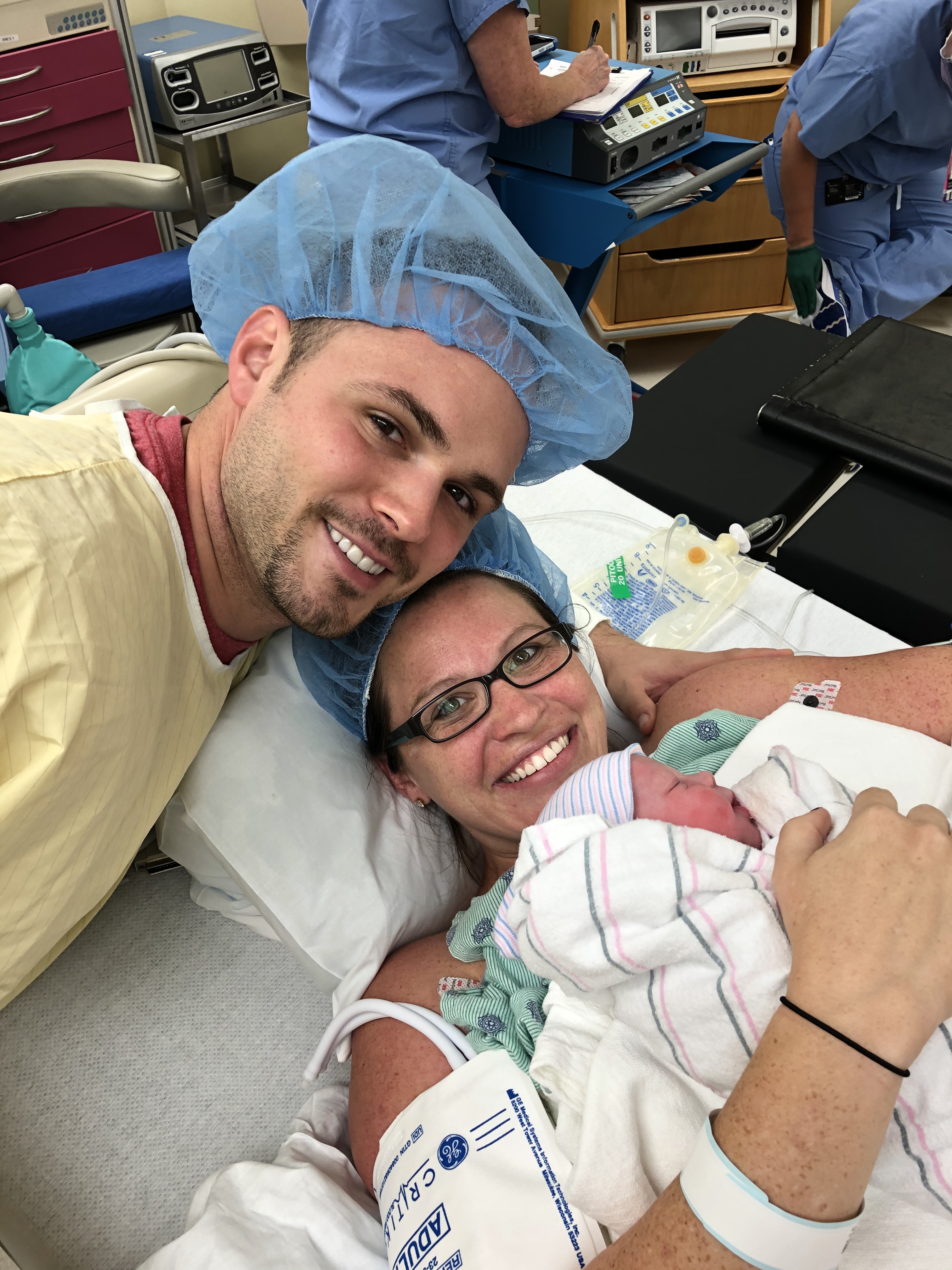 I had never undergone any kind of big surgery before and really had no idea what to expect. Adam was with me and stood by me as I was strapped and numbed to the table. The spinal block made me so incredibly nauseous, and it was really hard to joyfully be “present” the whole time. When Norah was pulled out by my doctors and was freed of all the fluid, she immediately let out the loudest cry I have ever heard from a baby. The doctors looked at Adam and I, and said, “Oh does she have a set of lungs!” She was born at 7 lbs. 7 oz. and was absolutely perfect.