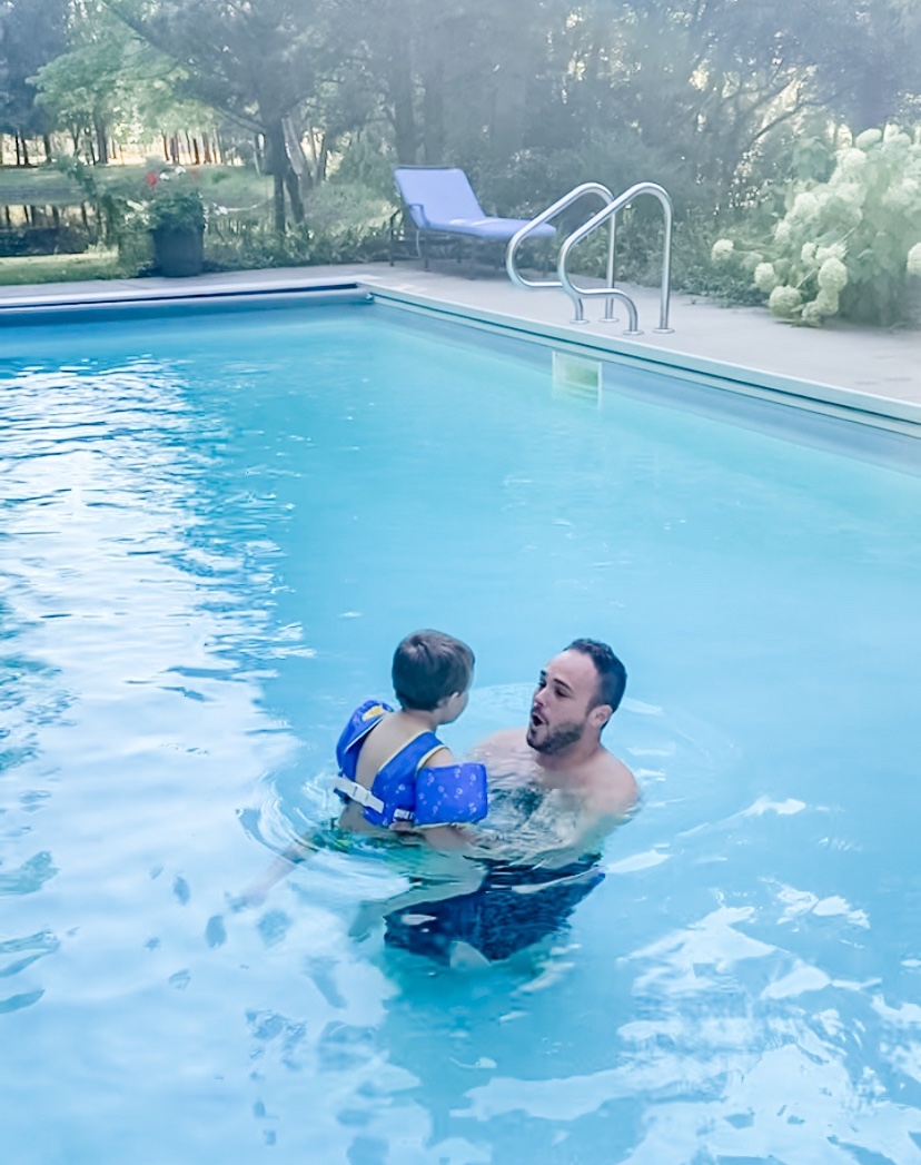 We were able to play outside, let our dog run around (she was in serious paradise), have bonfires, go exploring in the woods & even have a little day of pool fun. The pool wasn’t heated, but it made for a fun experience in the cold water! I remember when I was little always wanting to be the first one in my grandparents pool (no matter how cold it was)!! 🥶