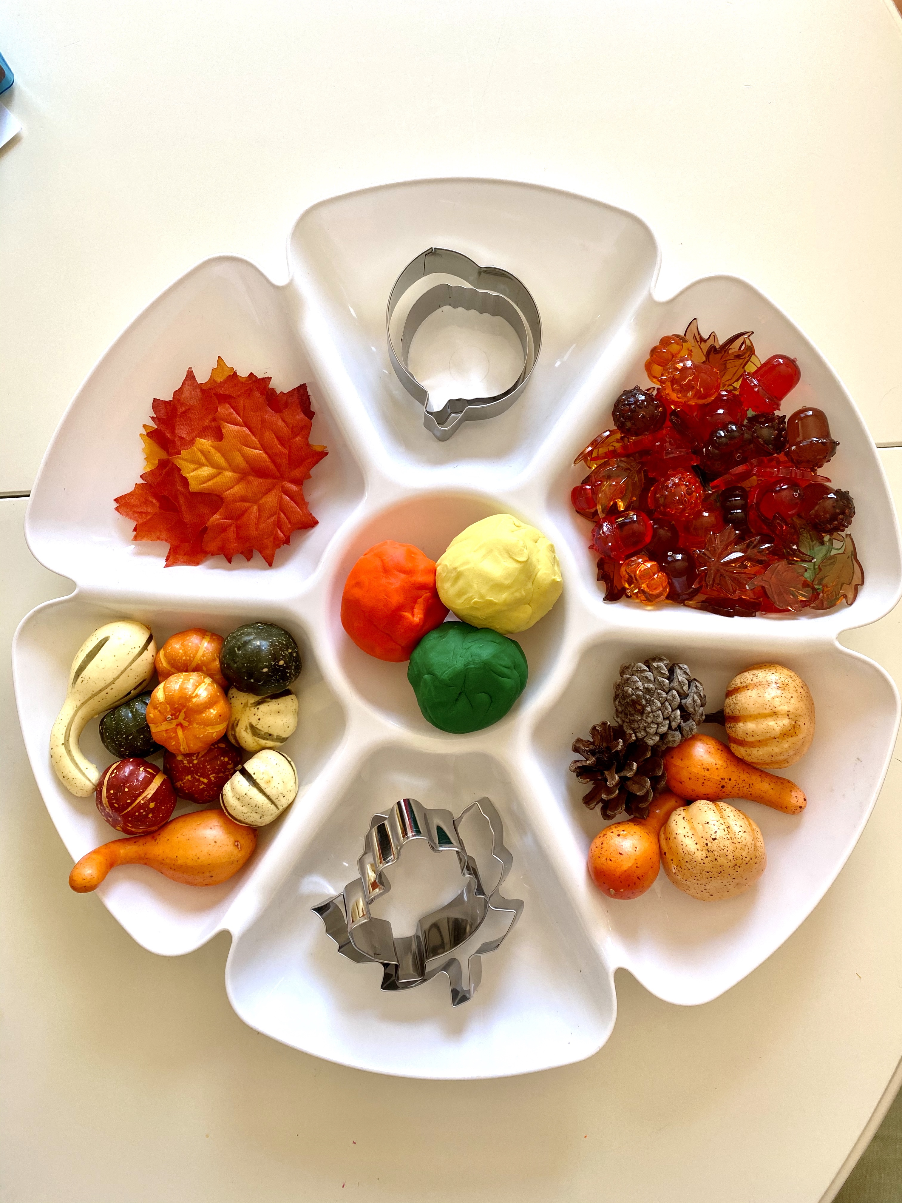 Playdough is a magical tool in the realm of child’s play. Some can’t stand it, or are afraid of the mess. However, it is an incredible tool to help strengthen a young child’s hand muscles to prepare them for the years ahead when they will be expected to hold writing utensils and scissors! Give them a fun tray, gadgets, and dough and the kids think I have literally hung the moon.
