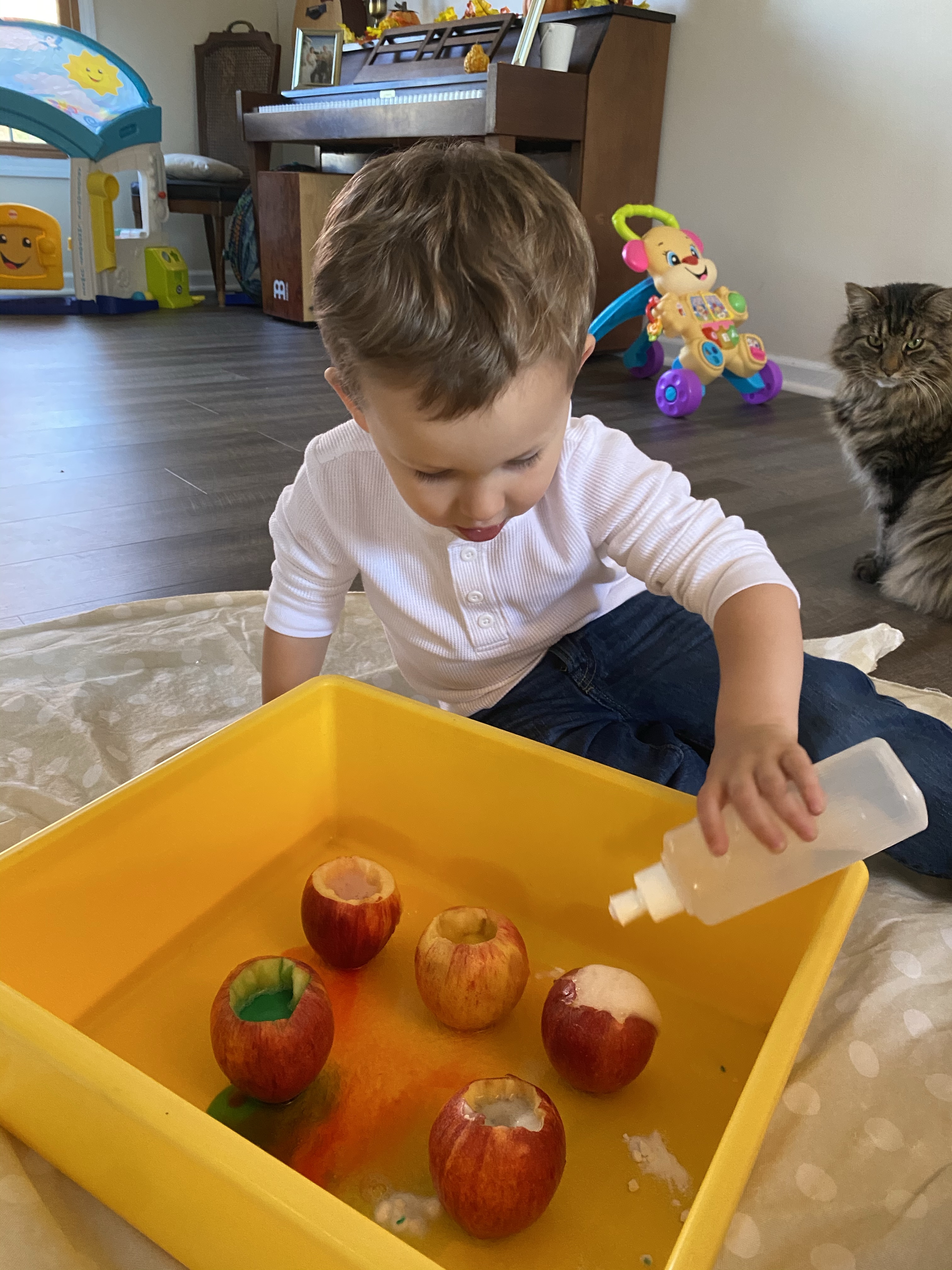 Fizzy Science Fun: You can NEVER go wrong with baking soda and vinegar fizzy science! There are endless possibilities on how to cater it to whatever season you are in. In this case, bring on the apples, pumpkins, skeletons, jack-o-lanters, and more!