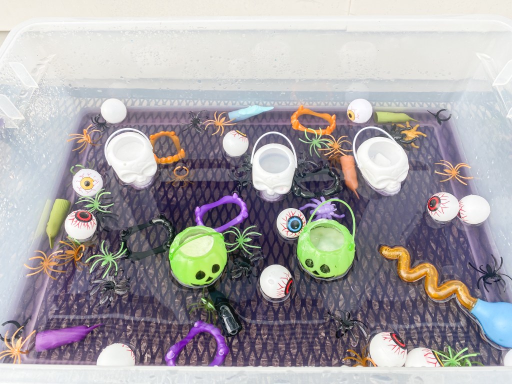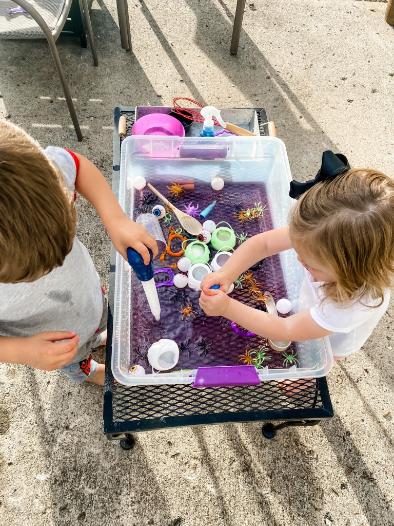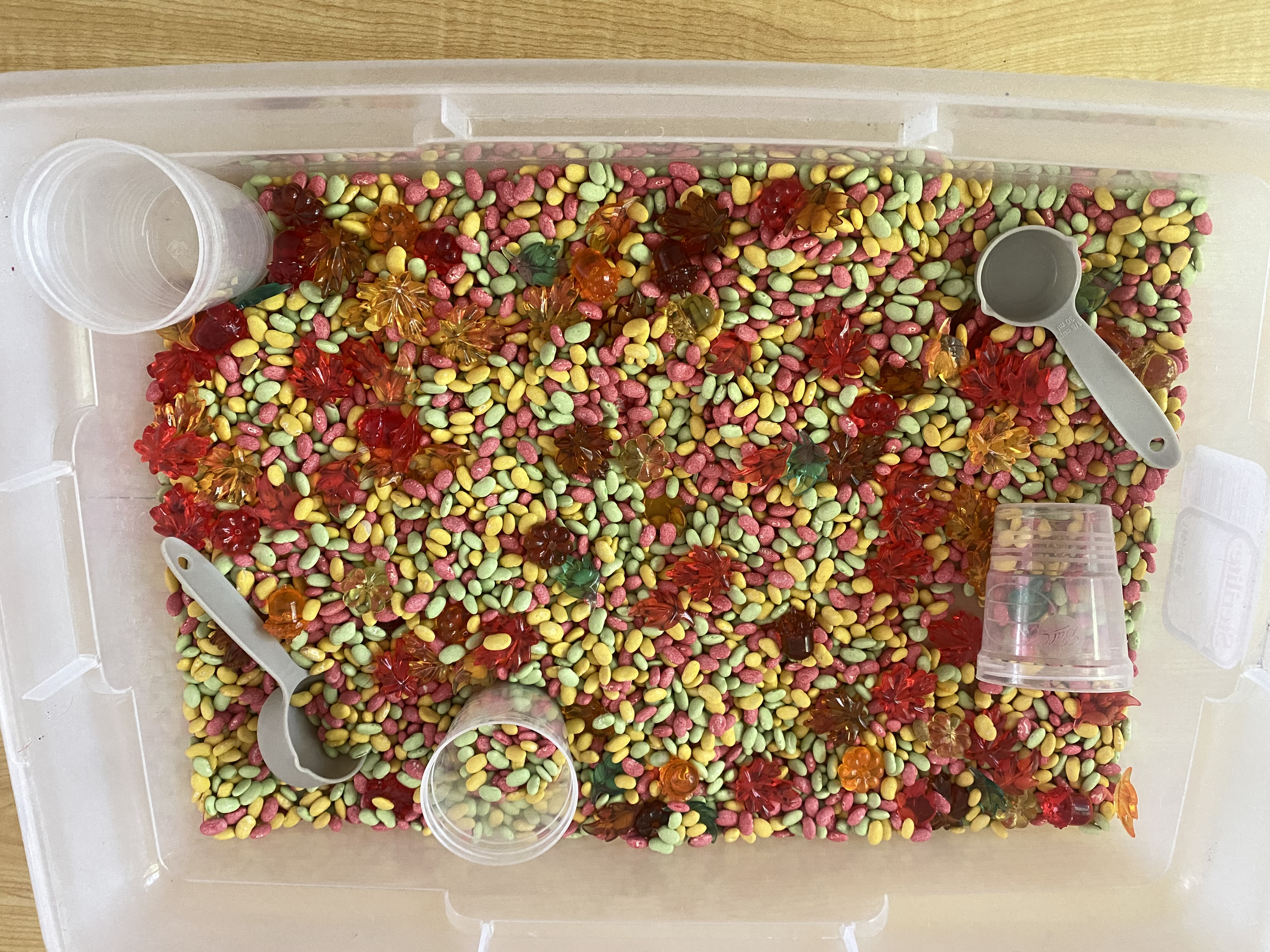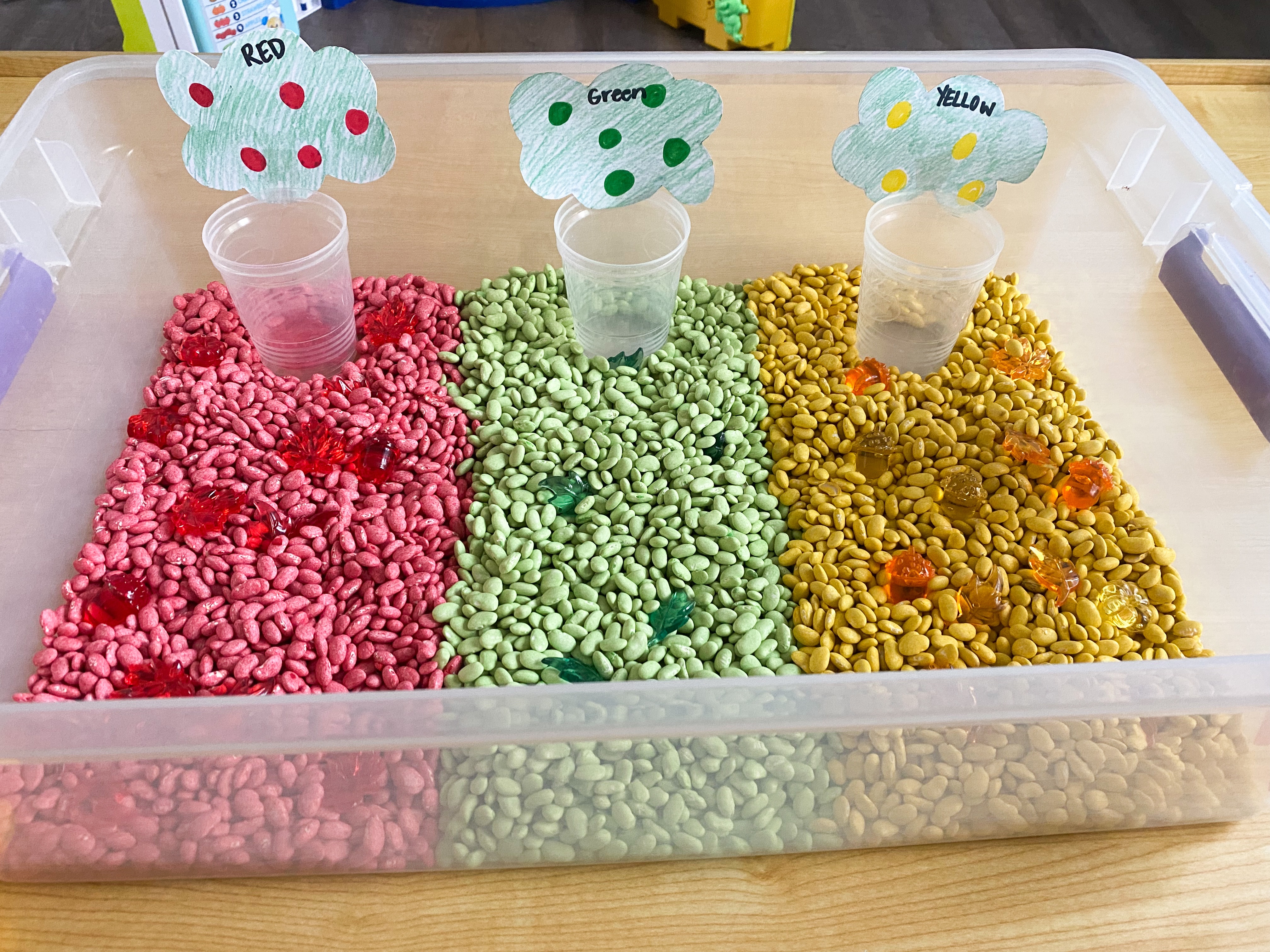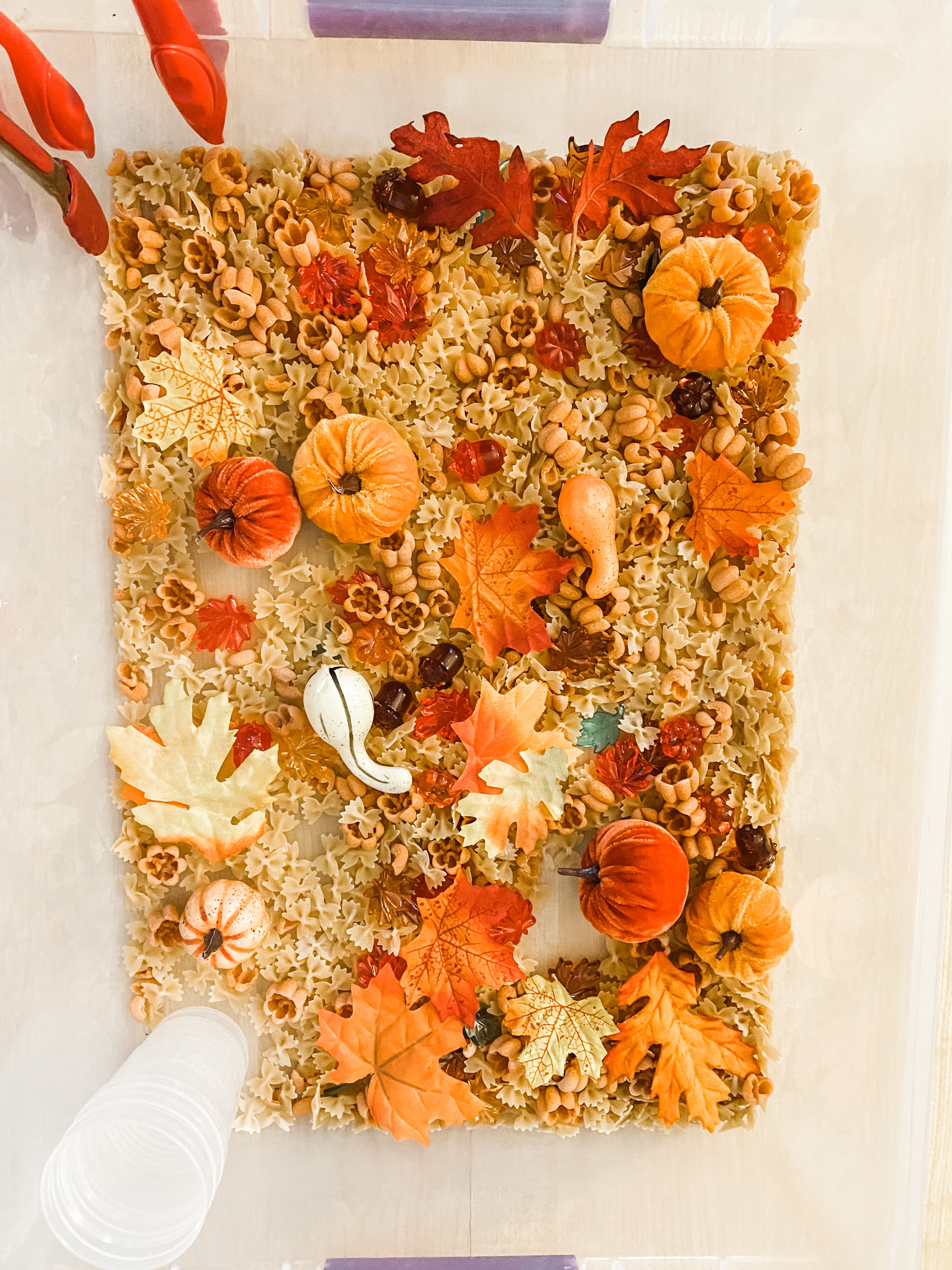 Sensory exploration is hands down the easiest, most rewarding type of play. It promotes independent imaginative play, while boosting those fine motor skills every little kid needs in order to be able to hold a pencil, cut with scissors, and more down the road. many underestimate the power of scooping, pinching, grabbing and more, that sensory play allows for. Bonus is that it is inviting and promotes language opportunities and identifying of what is in the bin, and a base for added toys! My kids love adding in their little figures for extra play (like Pokemon, little people, princesses, and more). Mostly all of the base and add ins I find at the Dollar store, Walmart, dollar spot, or Trader Joe’s/Aldi.