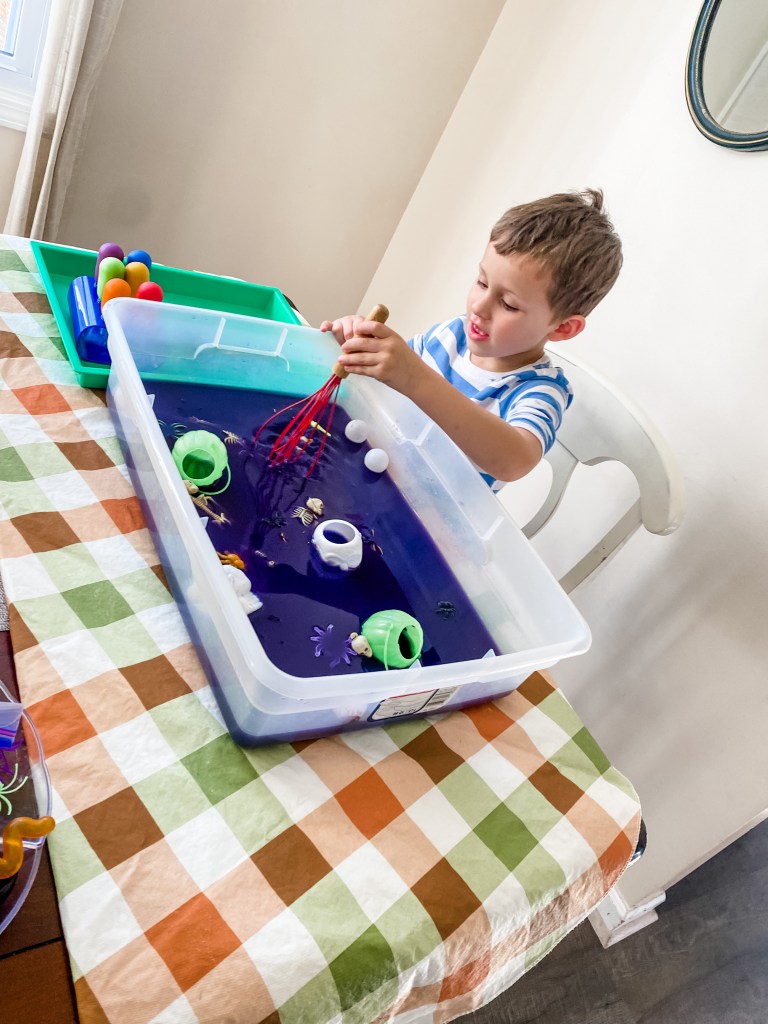 We can’t forget the most powerful kind of play of all. When in doubt, just add water!! This can be a plain tub of water, add in some tools, and Ta-Da! You’ve given yourself a few minutes to finish some hot coffee.