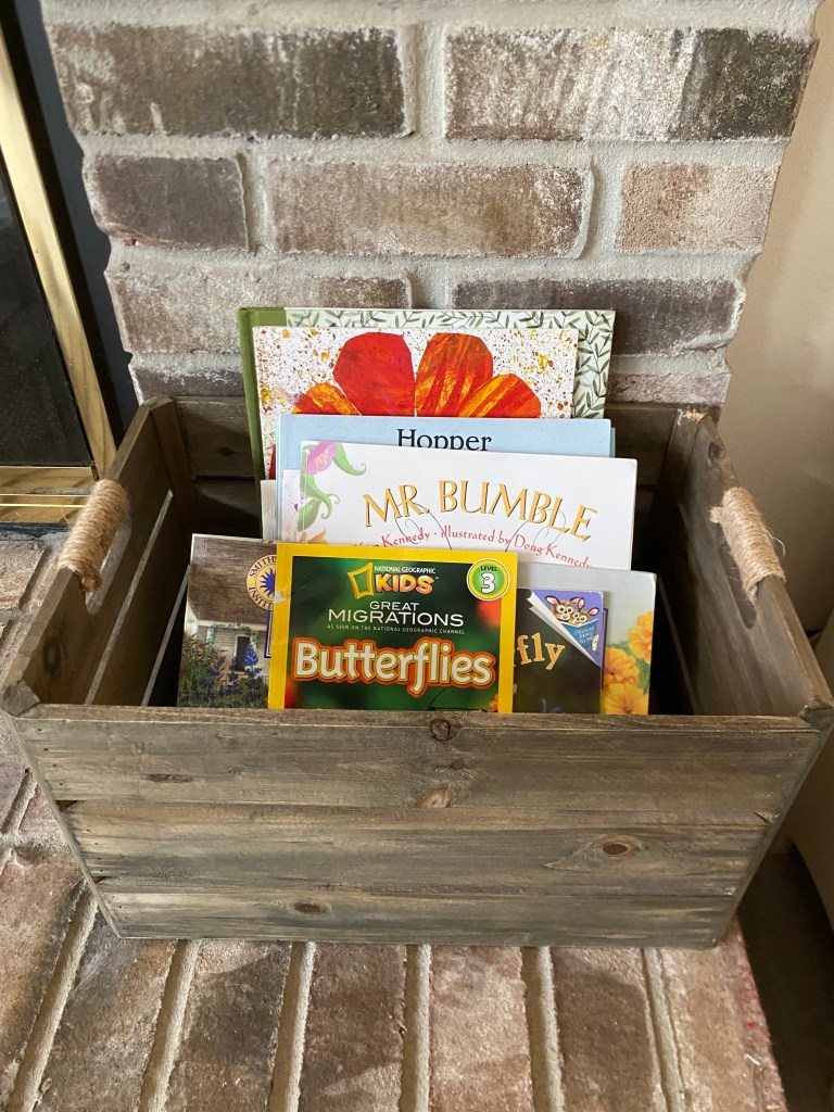 I do this for a few reasons. One, as a former teacher, I have quite the collection of books. This keeps them somewhat organized, so I know where they are. Two, it works as a cute decor with the given season. And most importantly, to promote a love for reading and spark interest. Having a basket keeps excitement of *new* books alive. Like when a kid hasn’t seen a toy in a long time and instantly starts playing with it? Same concept. My littles love the books! The benefits of reading to your children, are endless. Their joy and interest in reading books, begins at home.
